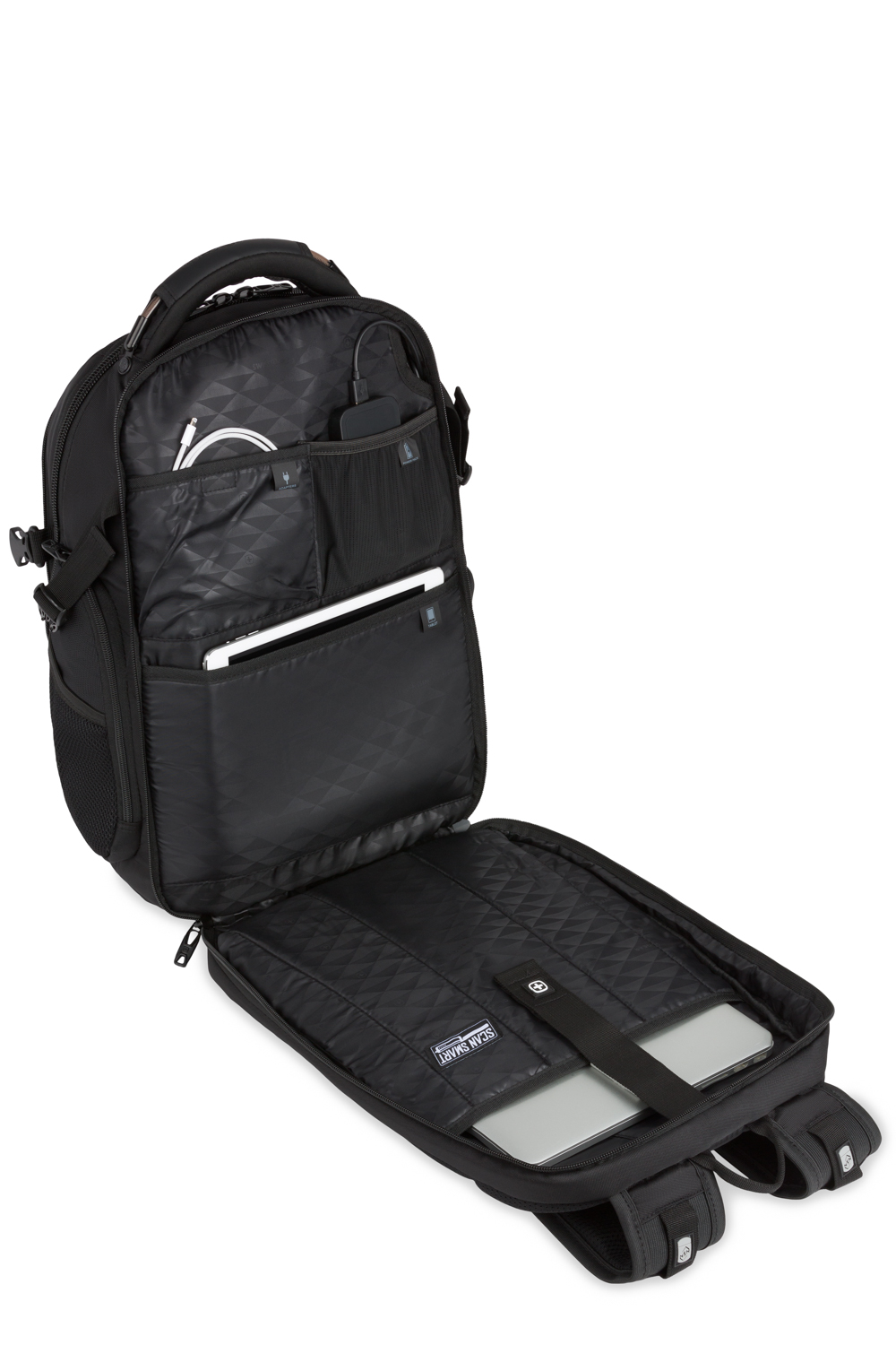 When you’re ready to move up to a different league of organization in a backpack, this is the one you want to strap on for size, the SWISSGEAR 5358 USB ScanSmart Laptop Backpack. Encased in durable, abrasion-resistant polyester fabric, this pack has a surprise around every corner.