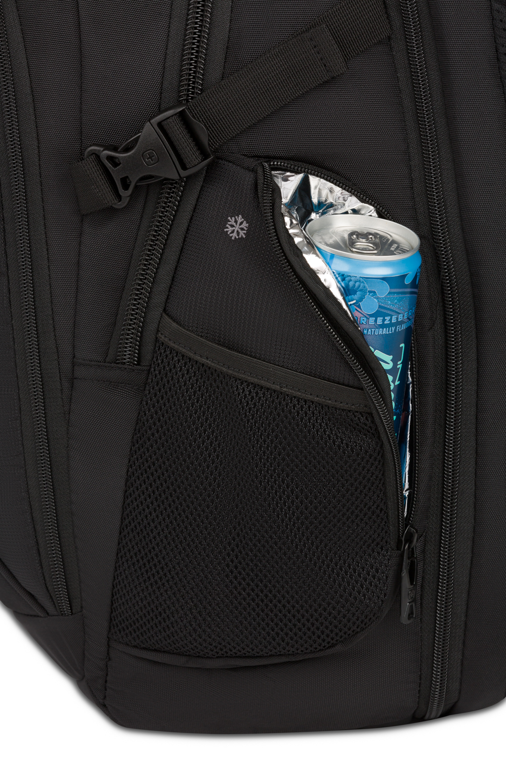 This bag comes with a TSA friendly lay-flat back panel with room for a tablet and a laptop, a front quick access pocket, a fleece lined crush-resistant sunglasses pocket and an organizational pocket. The center compartment is really where this bag shines as it has an internal zippered panel that when unzipped turns into a side-access shoe bag. Fully padded shoulder straps and back panel, a phone charging hub, and insulated side zip pocket round out this great pack.