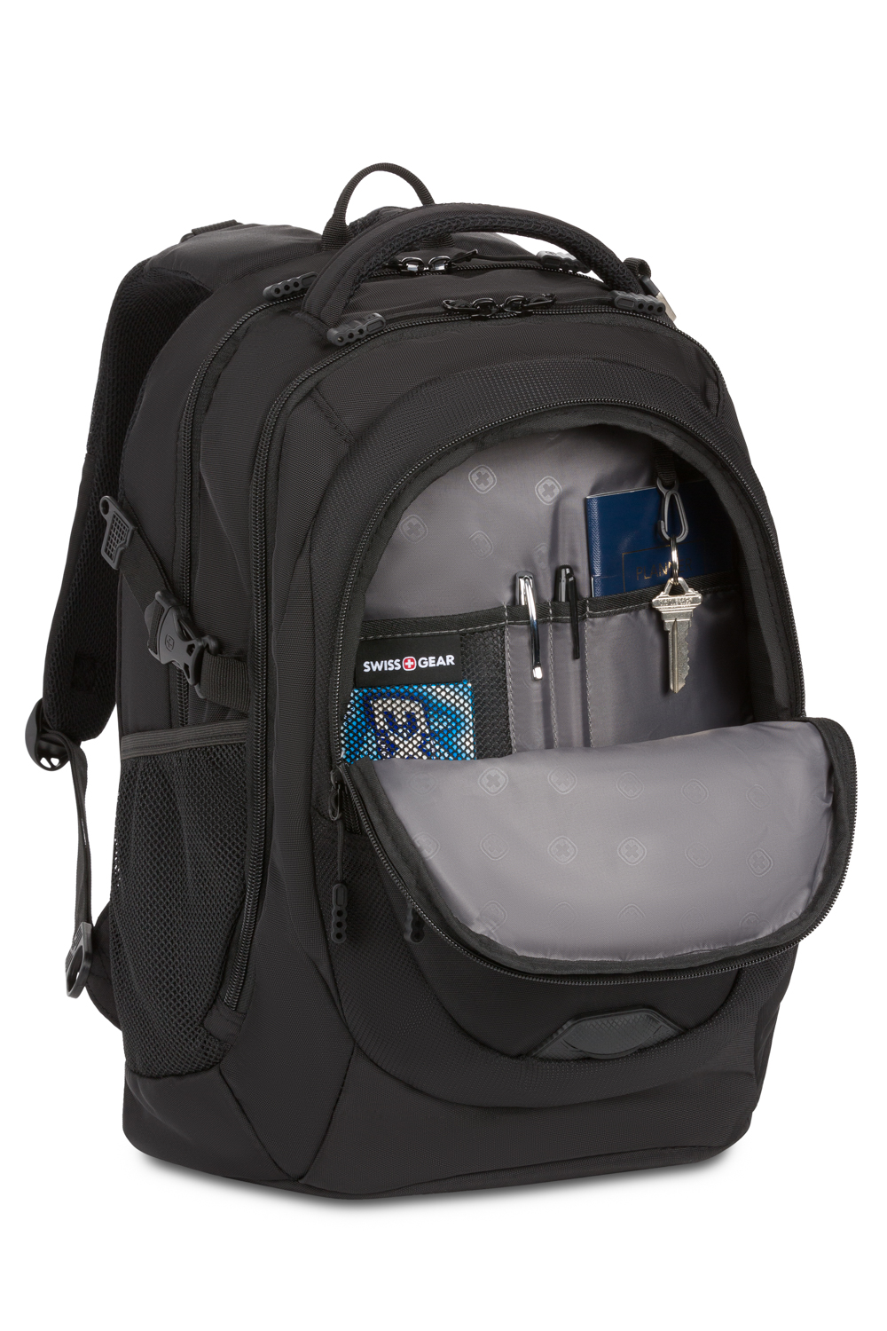 Pack your essentials for school, for work or for your next weekend adventure in the SWISSGEAR 6655 Laptop Backpack. Made from durable, scuff-resistant polyester fabric, this three-compartment backpack fits most 16” laptops and features a comfortable back panel with ergonomically shaped shoulder straps for hours of wearing comfort.
