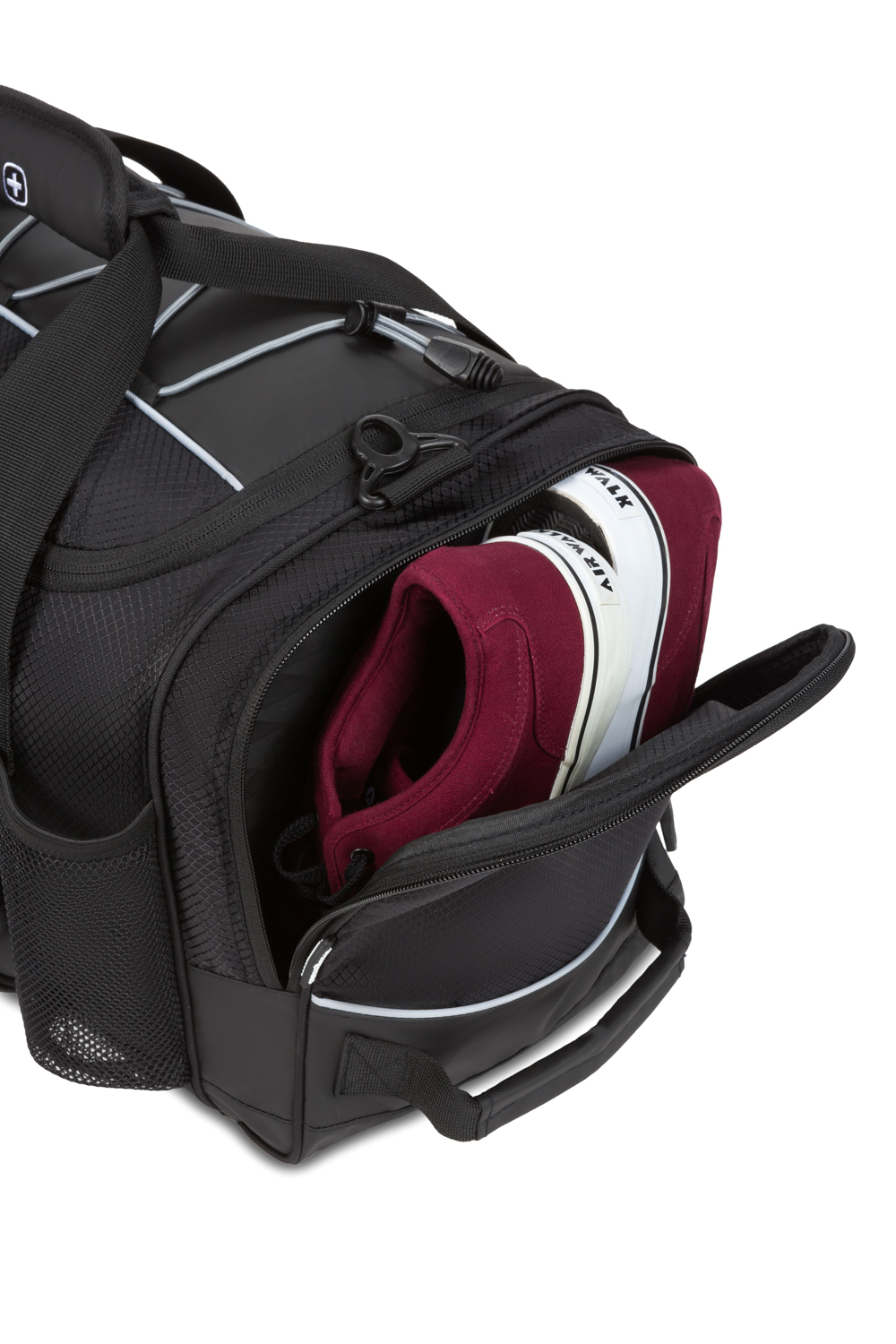 Engineered for versatility and velocity, the SWISSGEAR 9000 20” Apex Duffel Bag is a necessity. Made from 100% dobby fabric, its rugged construct features a spacious main compartment, two large zip pockets, and a front pocket. Stuff your workout clothes, travel gear, and toiletries inside its interior and stay hydrated as your canteen rests inside a mesh water bottle pocket.