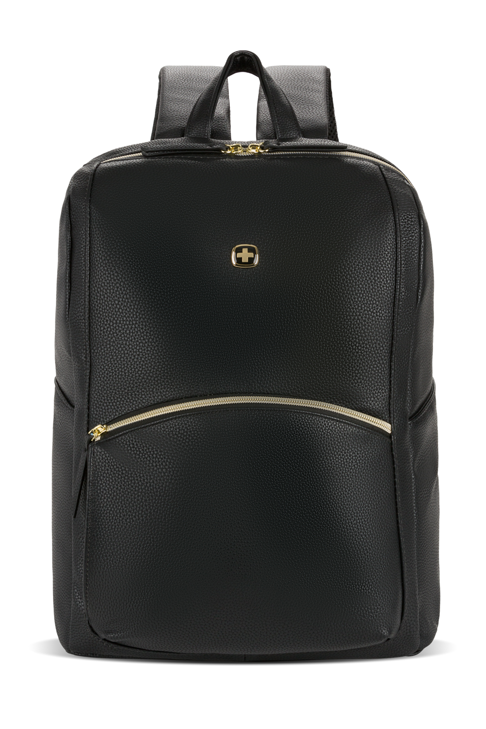 Elevate your presence effortlessly in any setting, be it 9-to-5 or 5-to-9, with the Wenger LeaMarie Slim 14 inch Laptop Backpack. Combining innovation with sophistication, this backpack boasts an exterior crafted from textured vegan leather adorned with gold accents, complemented with a lively sky blue lining.