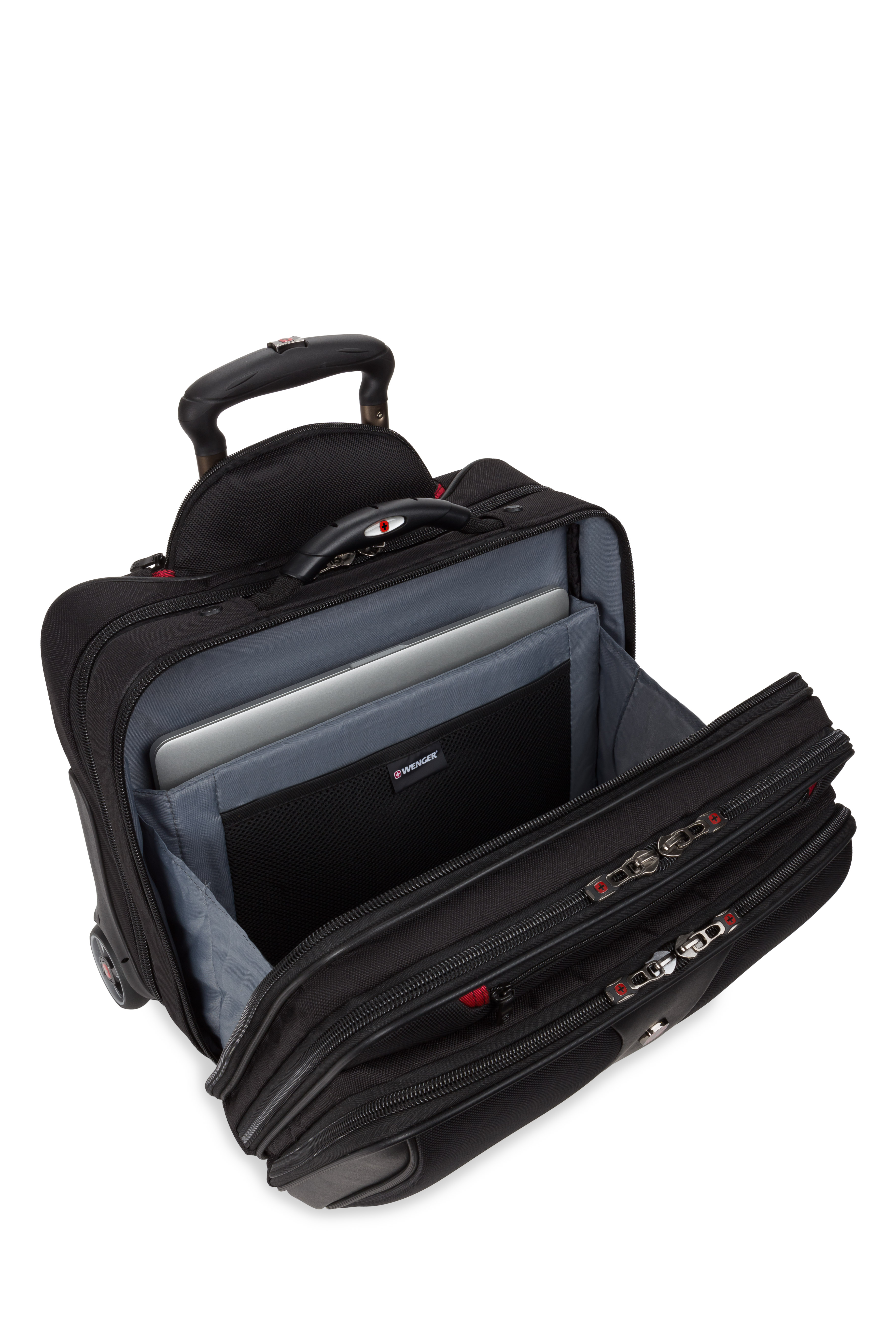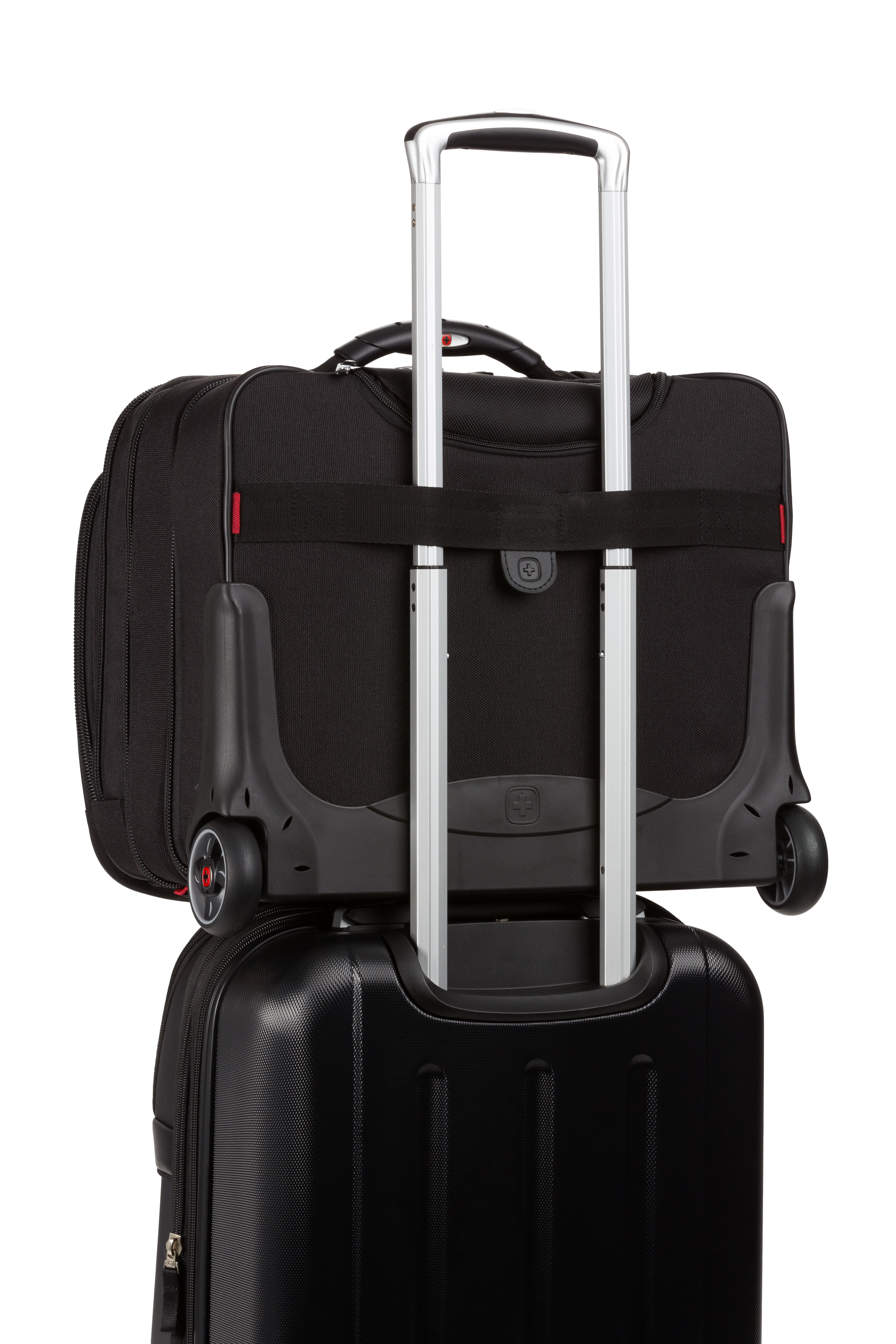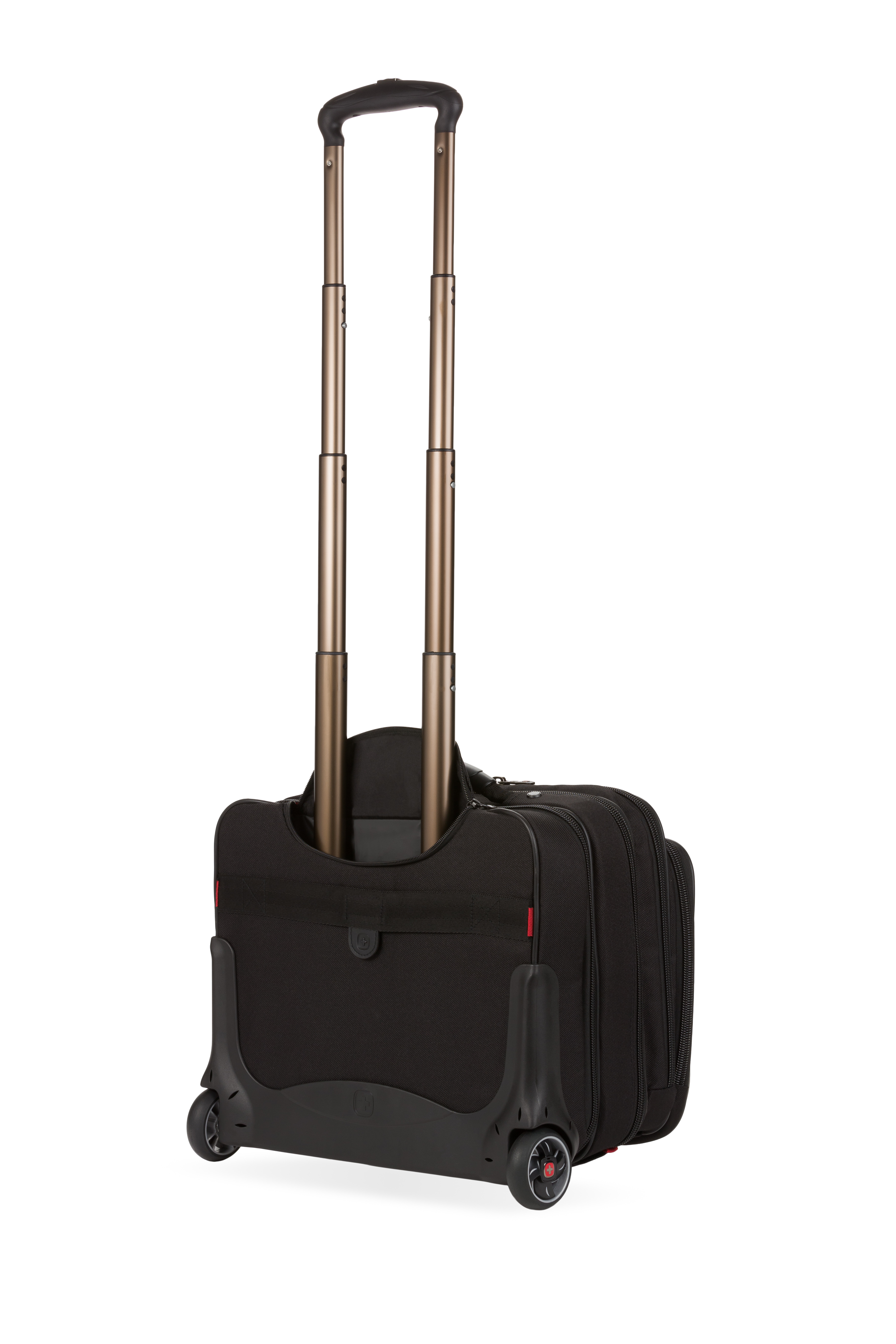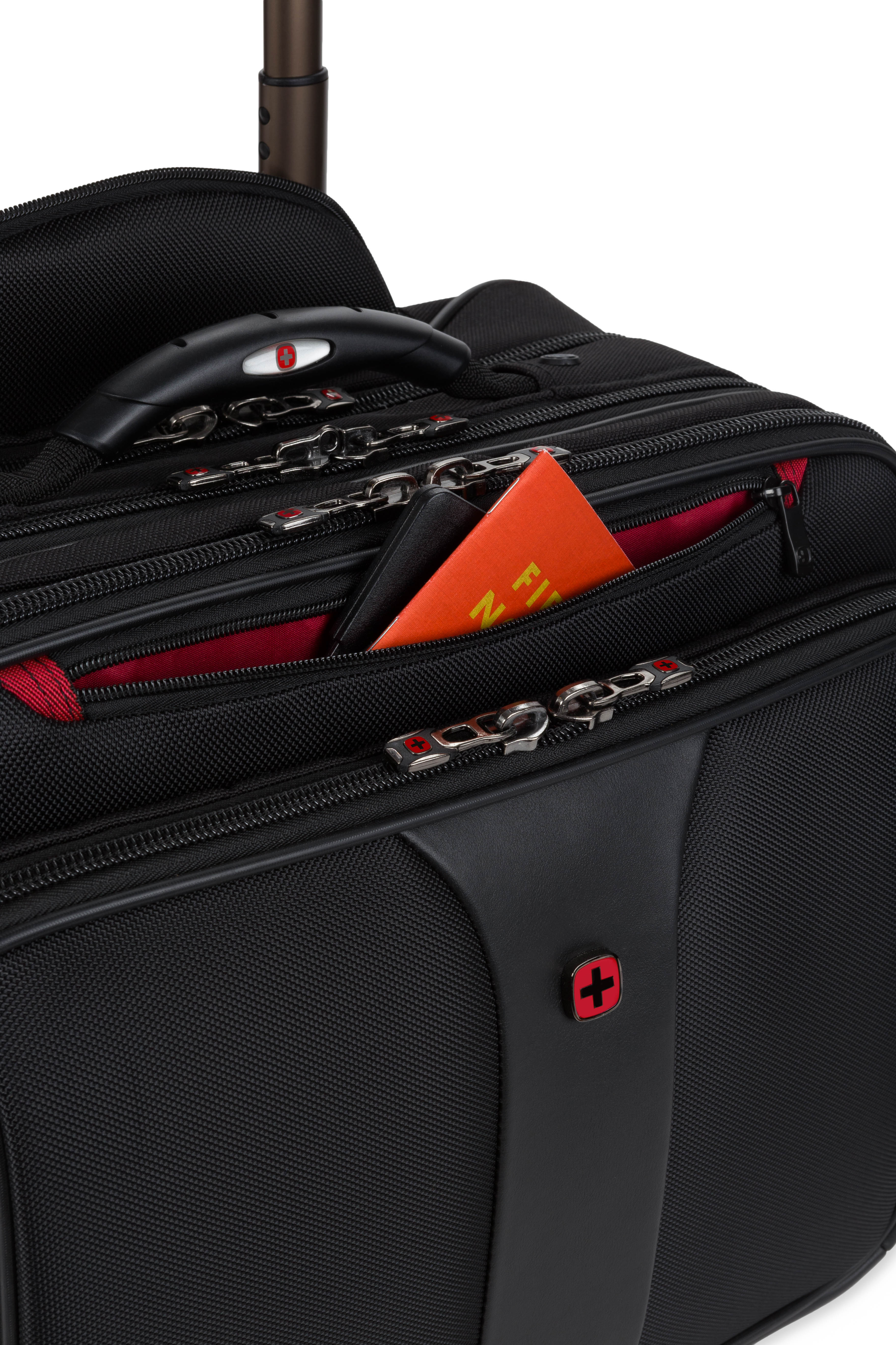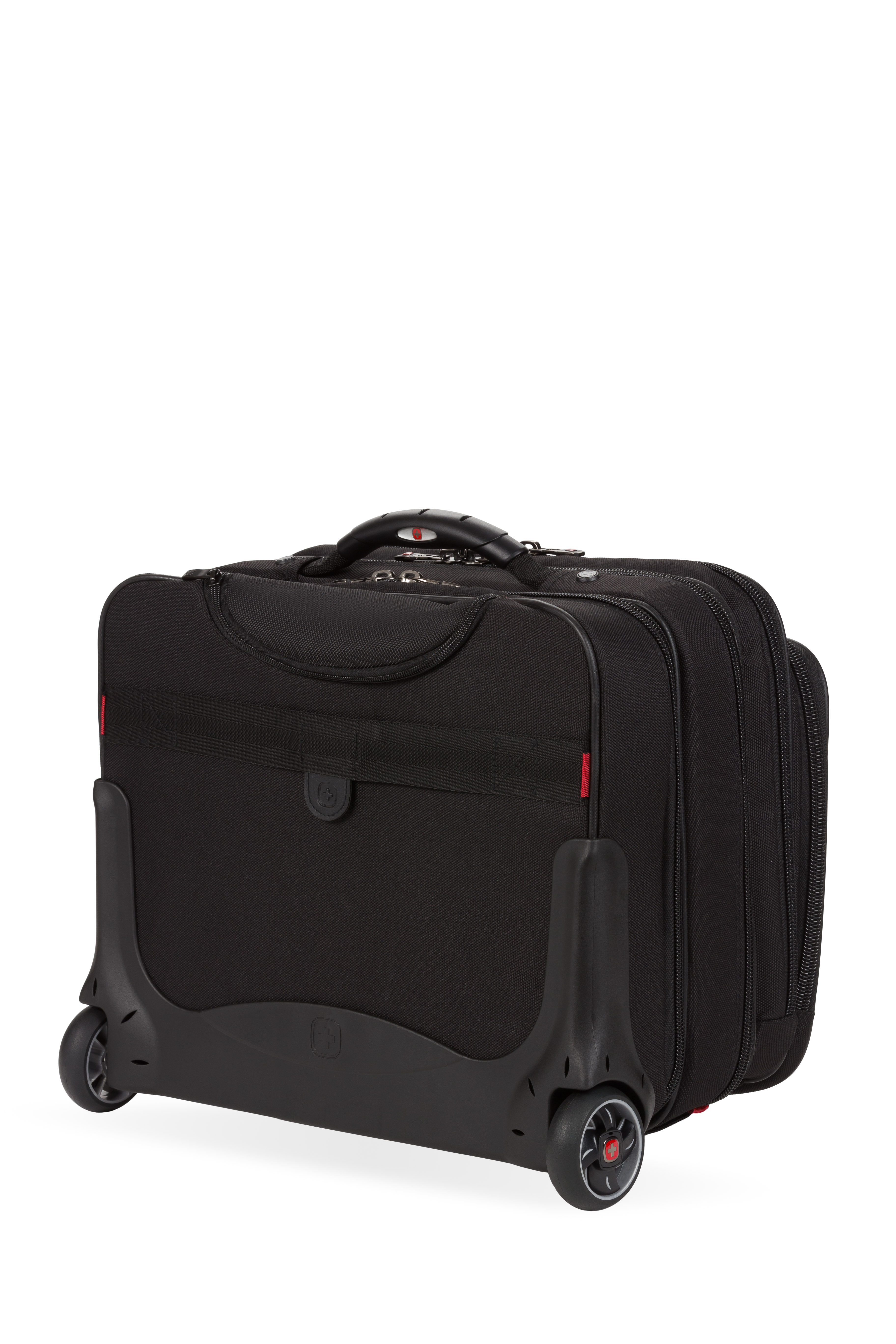 An essentials organizer keeps everyday gear neat, while the overnight compartment stores clothes. The expandable file divider and a quick pocket offer speedy access on the move. Featuring easy-glide wheels for smooth maneuvering and an ergonomic handle for optimum comfort.