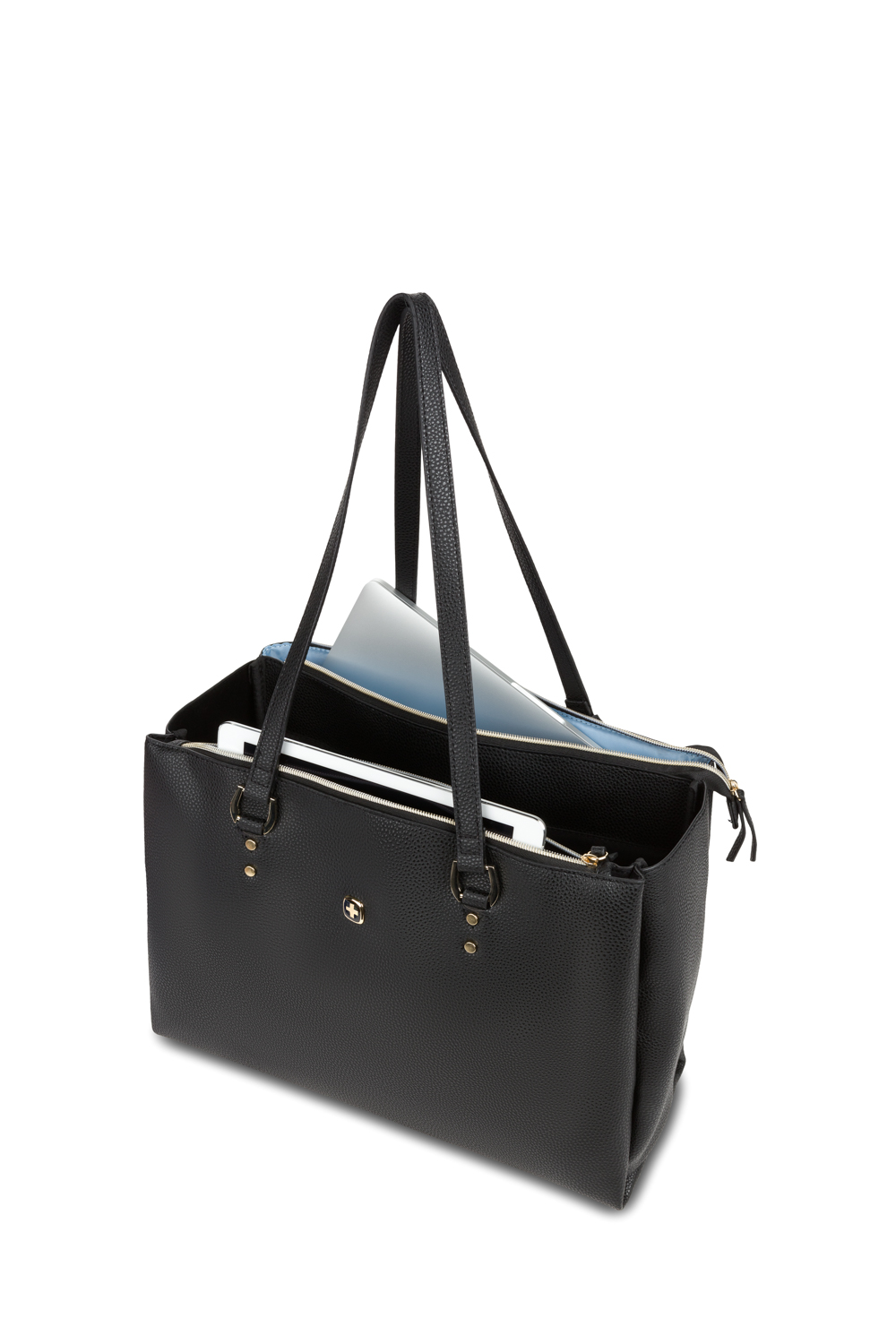 It’s a tote, a computer bag, and a purse, all in one. The Wenger Rosalyn 14 inch Laptop Tote carries everything you need to go from work to home in elegant, easy style.